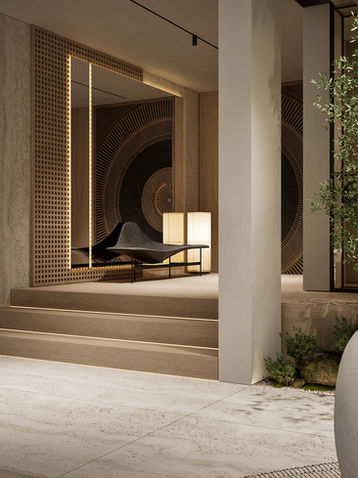 Projektując tę przestrzeń, chcieliśmy stworzyć miejsce, które nie tylko wygląda dobrze, ale też naturalnie wpływa na samopoczucie. Zaokrąglone formy, miękkie tekstury i subtelne przejścia między wnętrzem a otoczeniem – wszystko to miało jeden cel: sprawić, żeby przestrzeń działała intuicyjnie.